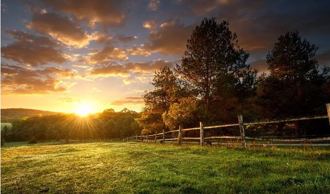 夕阳下的绿草地